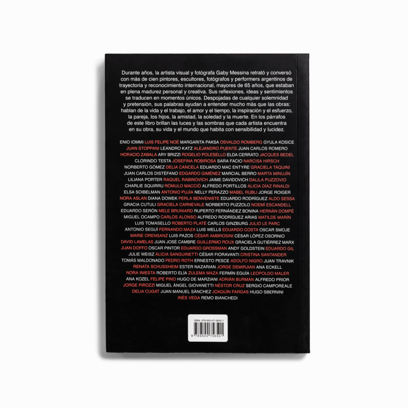 For years, visual artist and photographer Gaby Messina portrayed and conversed with over a hundred Argentine painters, sculptors, photographers, and performers of international renown, all aged over 65 and in the full maturity of their personal and creative lives. Their reflections, ideas, and feelings translate into unique moments. Stripped of any solemnity and pretension, their words help to understand much more than their works: they speak of life and work, love and time, inspiration and effort, partnership, children, friendship, loneliness, and death. In the paragraphs of this book, the lights and shadows that each artist encounters in their work, life, and the world they inhabit shine with sensitivity and lucidity.